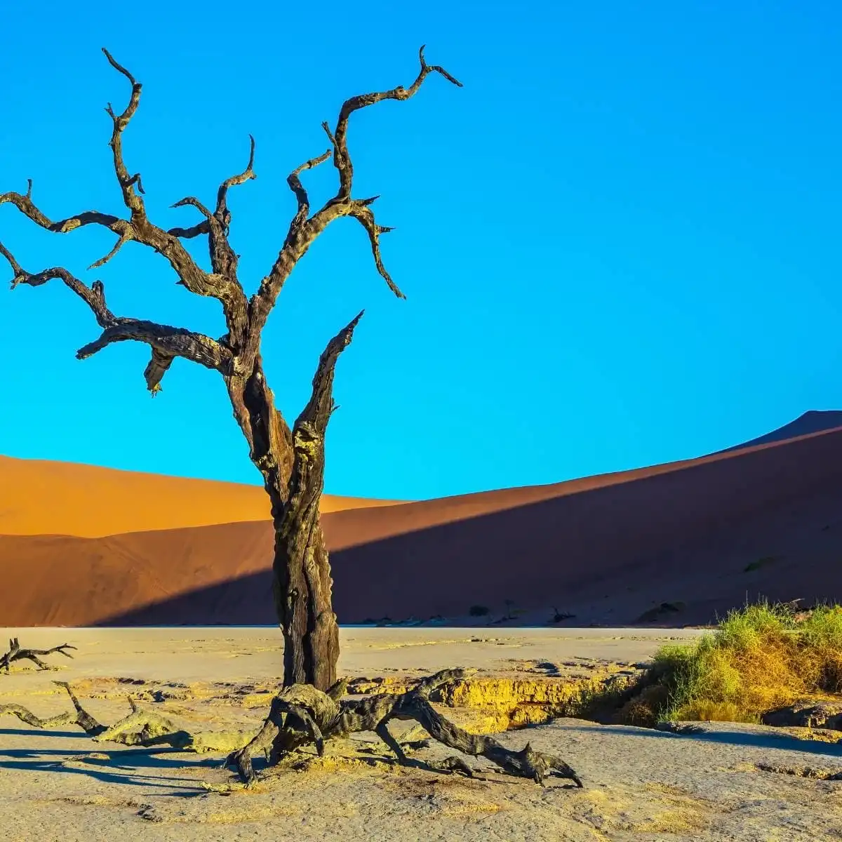 Il Safari Namibia inizia dalla capitale Windhoek, città dall’anima europea e africana insieme. Proseguirai verso il Namib Naukluft, con le famose dune di Sossusvlei alte oltre 300 metri, per poi attraversare paesaggi lunari fino a Swakopmund, cittadina costiera in stile coloniale tedesco.